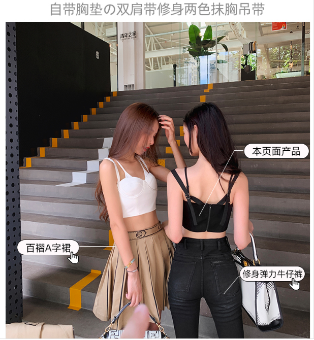 自带胸垫の双肩带修身两色抹胸吊带背心设计感小众外穿