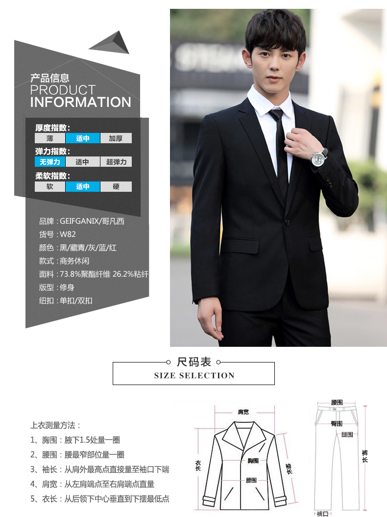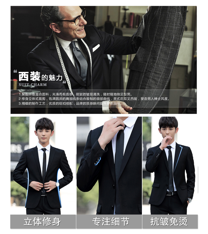 西服套装男士三件套韩版修身小西装商务休闲职业正装新郎结婚礼服