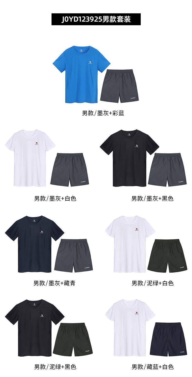 动漫周边 > 服饰 > 骆驼运动套装男女士舒适透气干爽针织弹力短袖t恤跑步健身两件套