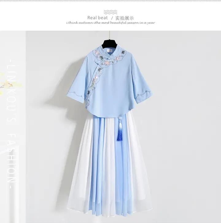 采用蚕丝,面料平整,简约舒适汉服,古典美中添加时尚色调;
