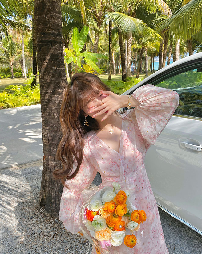 烫金箔工艺阳光下光泽感超美裙身飘逸灵动上身很仙气
