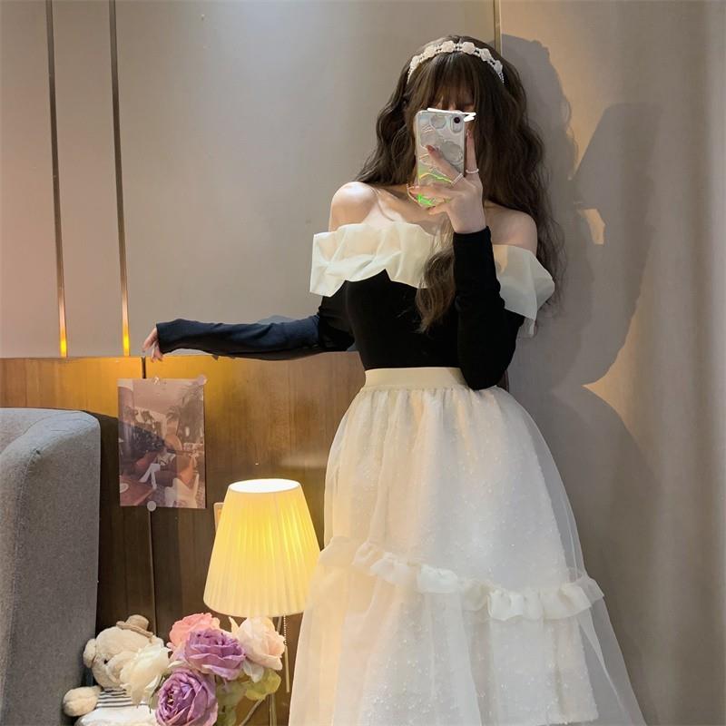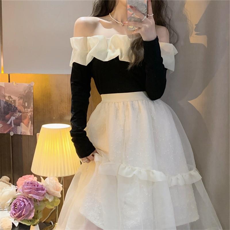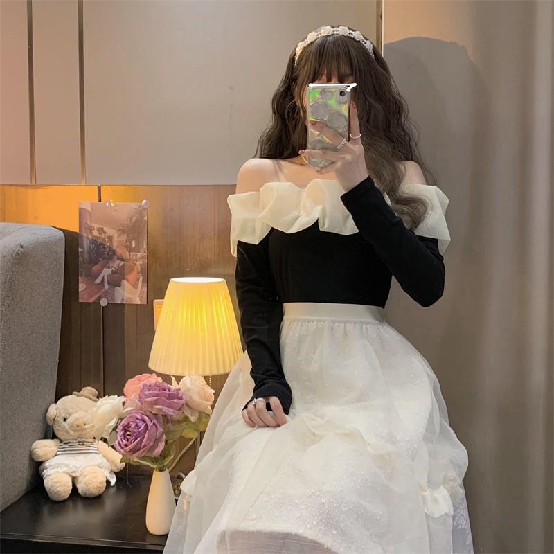 碎花高腰蓬蓬裙