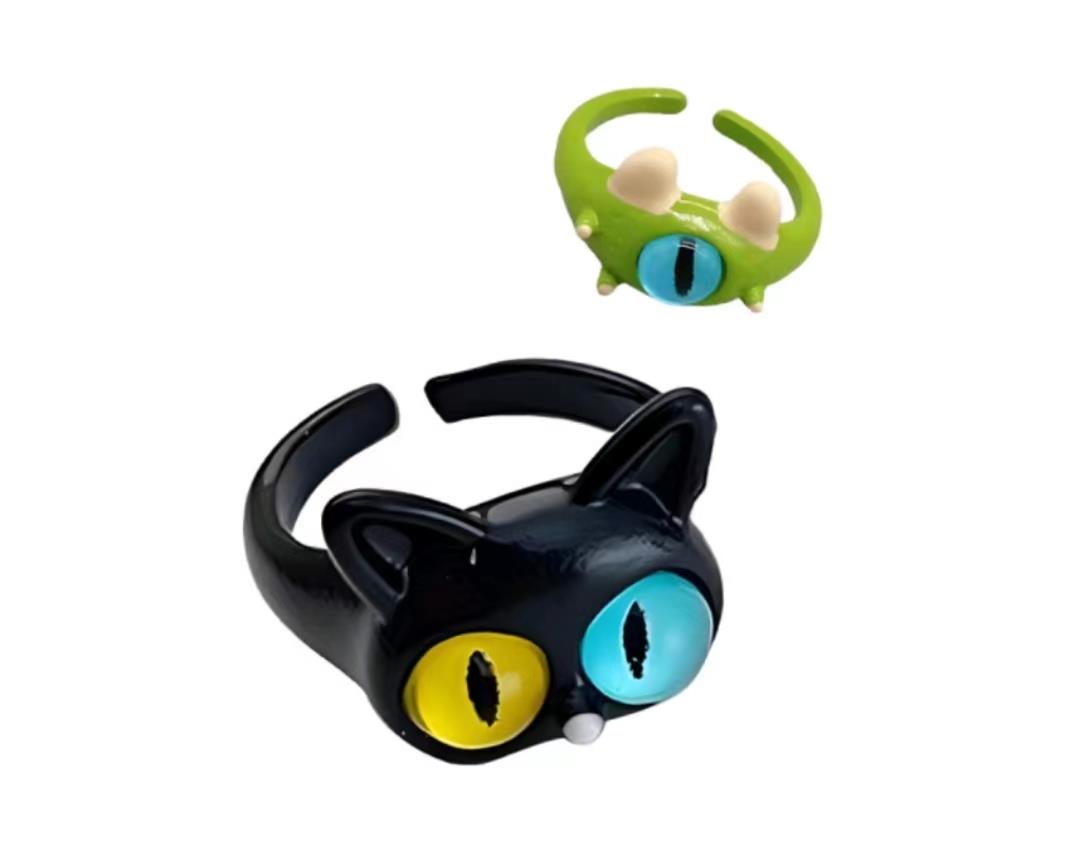 商品名称 FASION童趣搞怪黑猫小怪兽开口戒指小众百搭指环