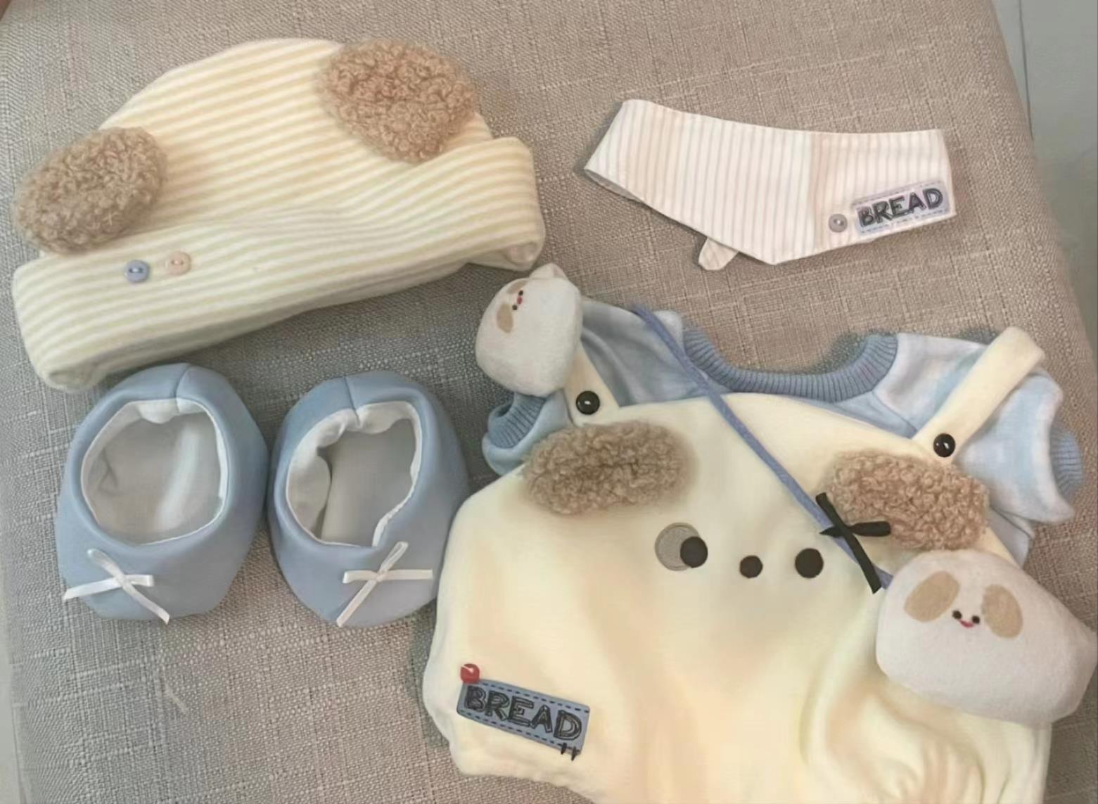 商品采用毛绒,棉毛等材质,制作可供10cm-60cm玩偶的饰品和衣服。