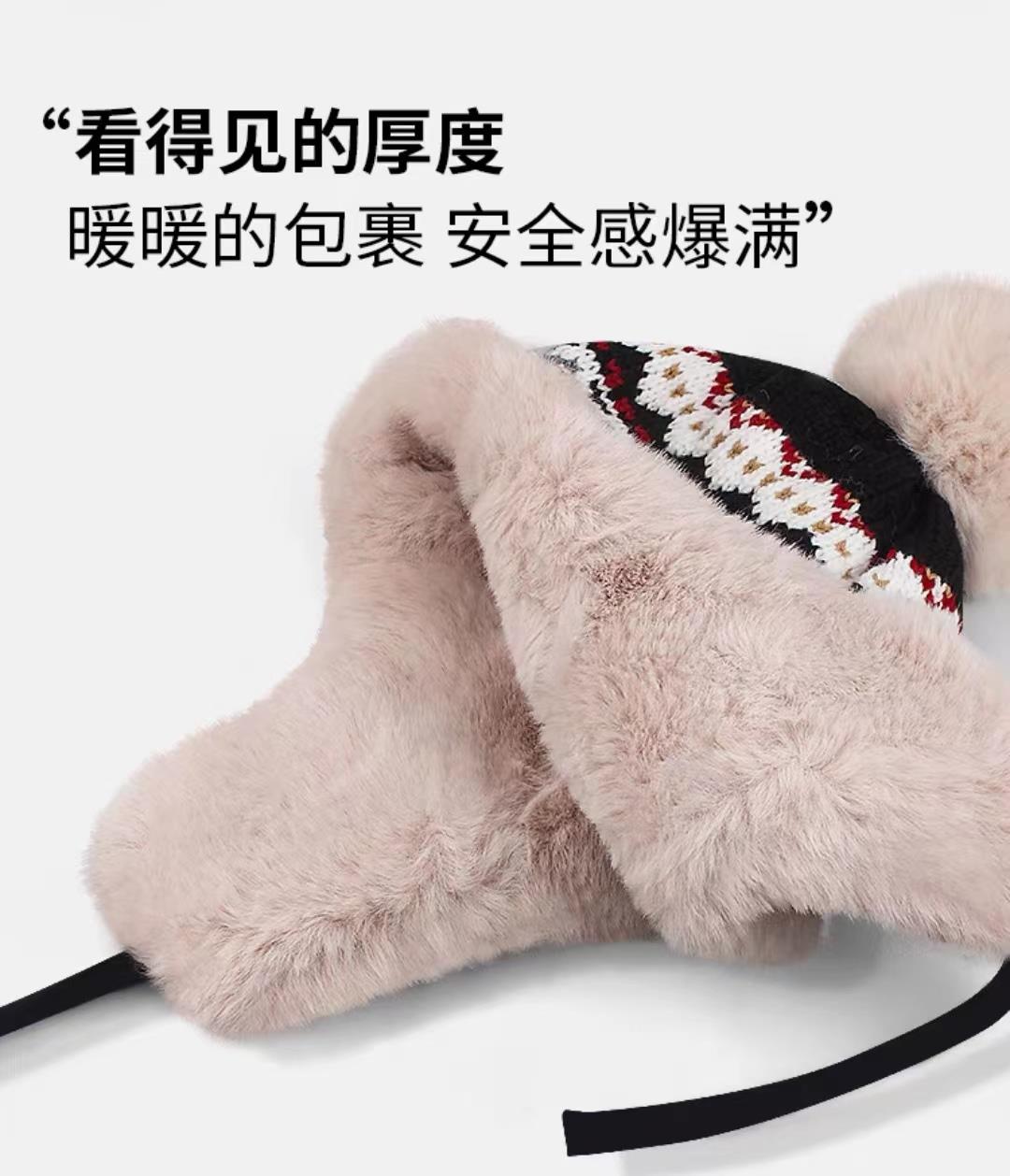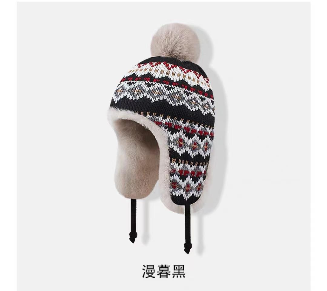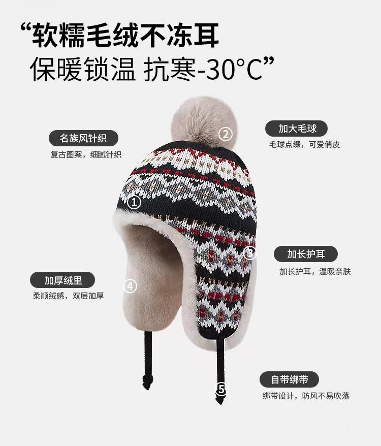 民族风毛线针织帽身,搭配加厚双层毛绒纤维,保暖不透风