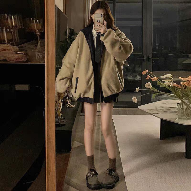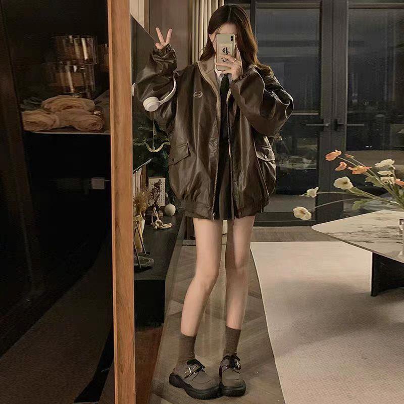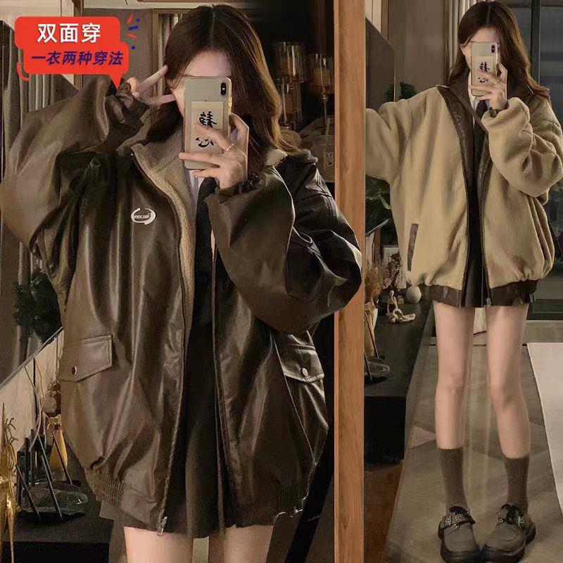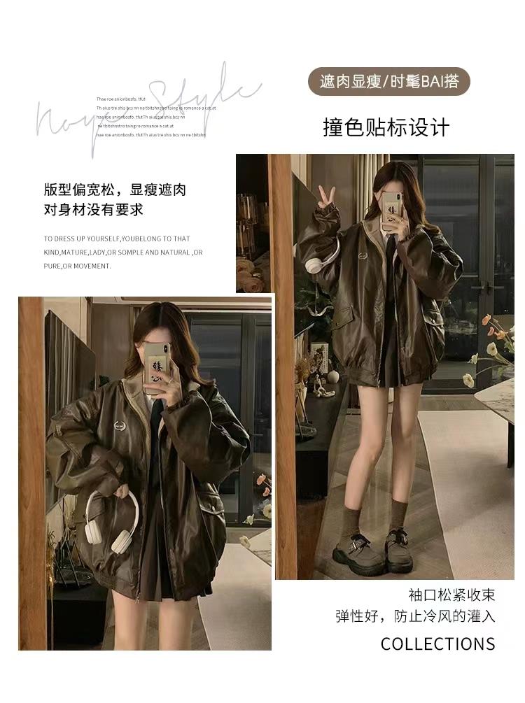 双面可穿,皮衣外套,360度的时尚让在整天也能有气势,版型偏宽松,显瘦遮肉,对身材没有要求,袖口松紧收束弹性好,防止冷风灌入。