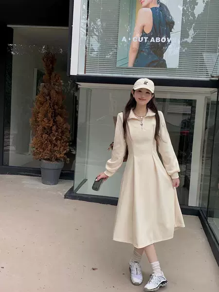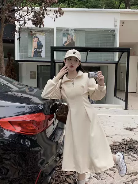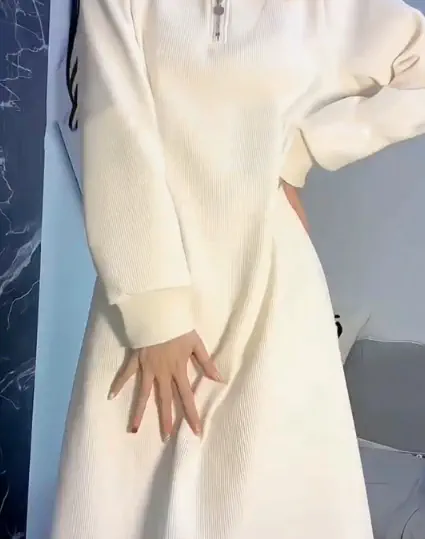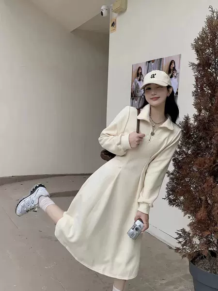 流行秋冬季大衣内搭打底长裙新款加厚长袖卫衣连衣裙子女