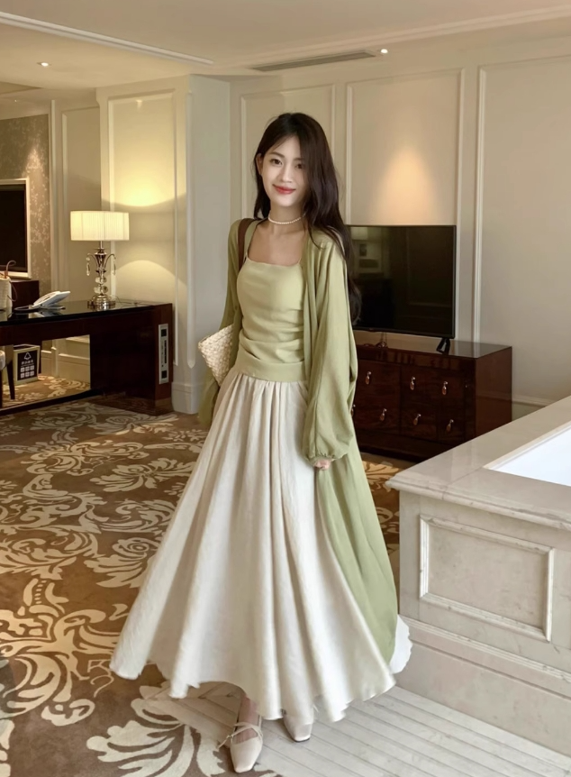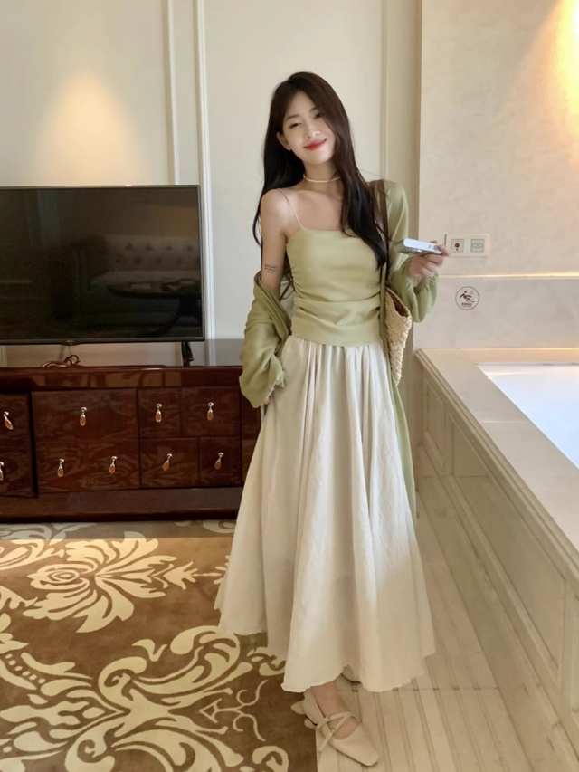 尺码:2XL,S,M,L,XL颜色分类:绿色背心+杏色半身裙+绿色