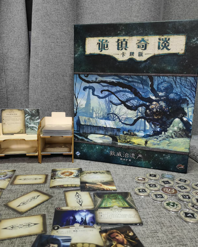 基础版的内容主要是包含五个调查员,每个调查员有一套预组,此外还有一些卡牌,主要是一些需要经验的卡牌,以便在剧本之间使用经验升级替换从而优化自己的卡组。总的来说保证了每张卡牌至少有2张同名卡,基本足够。剧本方面,基础版包含三个剧本,整个大剧情名称叫狂热之夜,时间线是经典的1920s的美国阿卡姆市,调查员们聚集在小屋的书房内准备调查一系列事件,随后遭遇的一系列事情。