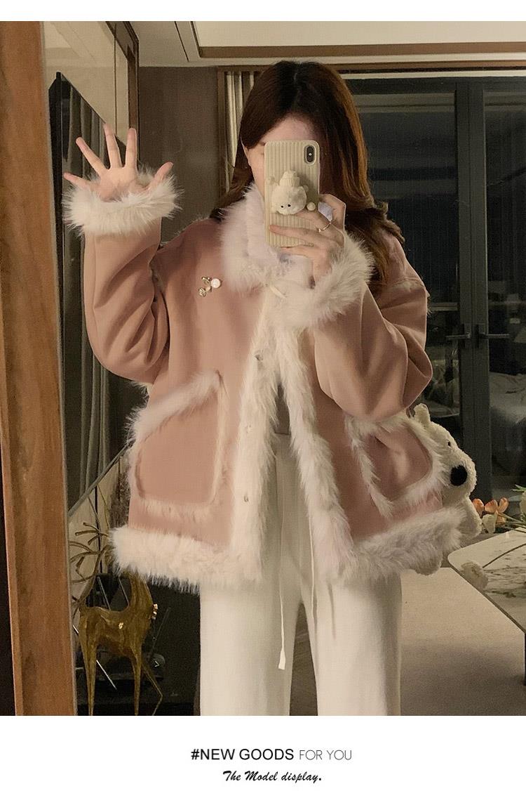 韩版2024秋冬款皮毛一体显瘦气质棉服