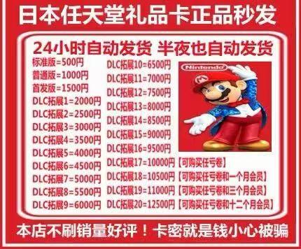 日区eshop使用,请勿将购买的充值卡发给他人使用。