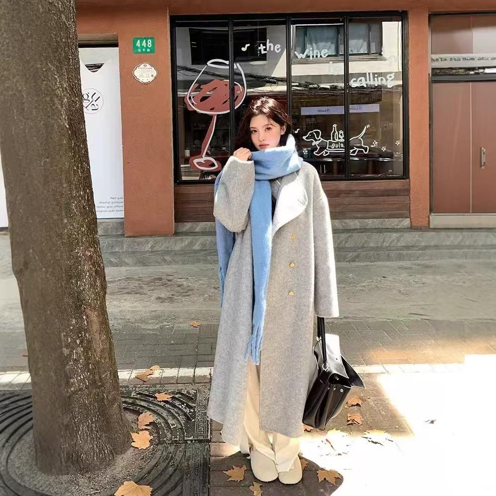 秋冬新款立领小个灰色双面羊绒大衣女中长款高级感加厚长毛呢外套