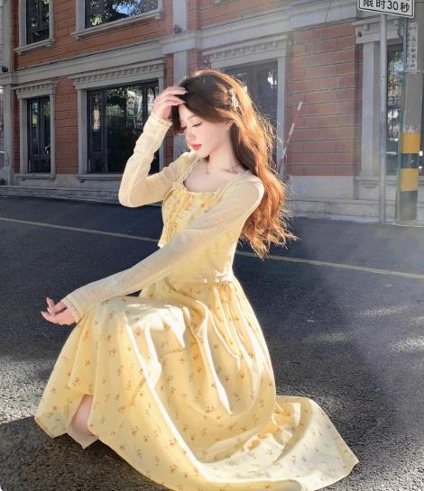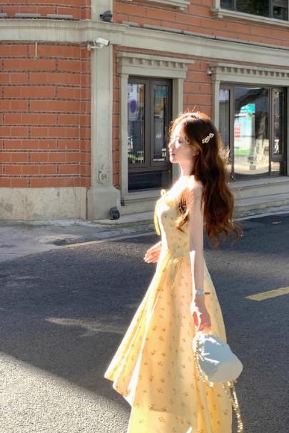 奶黄碎花吊带长裙(第一批),奶黄碎花吊带长裙(第二批),搭配