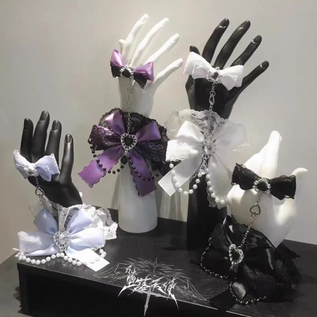 这套地雷系蝴蝶结手袖,以经典蝴蝶结为基础,用蕾丝、珍珠等营造危险又迷人的矛盾感,暗色系为主调适配病娇、哥特、地雷系、日系穿搭,手工缝制保障质感,适配于漫展出片以及日常约拍街头等场景,戴上能快速营造“危险甜心”氛围感,满足追求独特的暗黑甜酷风格人群需求。