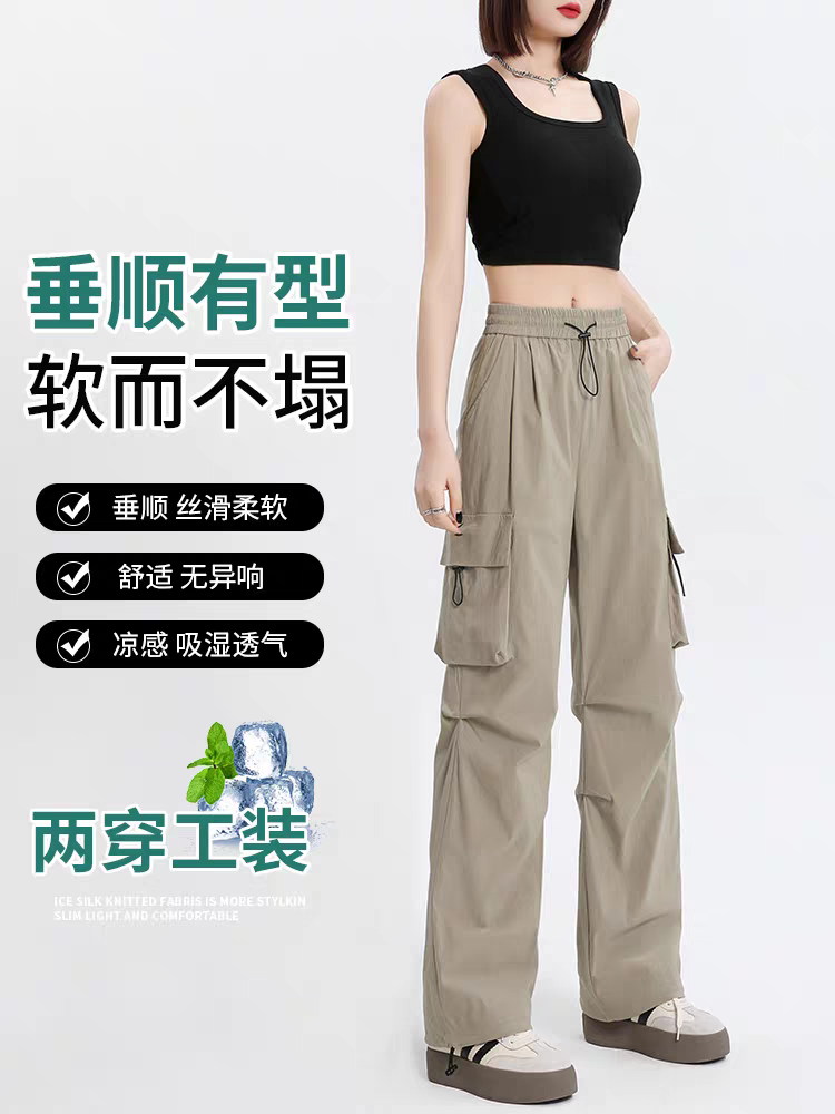 今夏爆款冰丝速干工装裤,将美式复古与户外机能风完美融合!采用冰丝混纺面料,接触肌肤瞬间降温,37℃高温下仍能保持清爽;速干科技加持,汗水快速蒸发,户外运动或通勤暴走也不黏腻,时刻保持干爽舒适。立体剪裁结合宽松直筒版型,修饰腿型效果拉满,O 型腿、小粗腿轻松隐藏;高腰设计搭配可调节腰带,适配不同腰围,凸显腰线的同时拉长腿部比例。