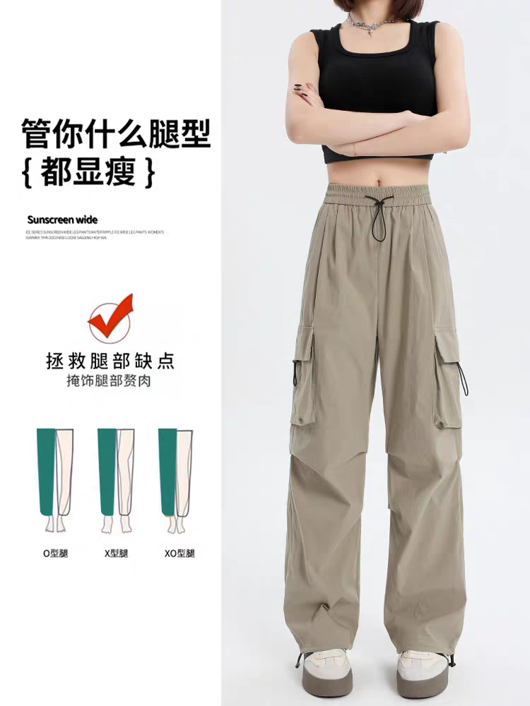 多口袋设计是点睛之笔,侧边大容量立体口袋、后袋个性贴布装饰,兼具实用性与潮流感,手机、钥匙等随身物品轻松收纳。裤脚抽绳设计,可随心切换束脚、阔腿造型,搭配短款露脐 T 恤 + 马丁靴,秒变街头辣妹;配运动背心 + 老爹鞋,解锁美式户外休闲风,一裤多穿,轻松驾驭多种场景。