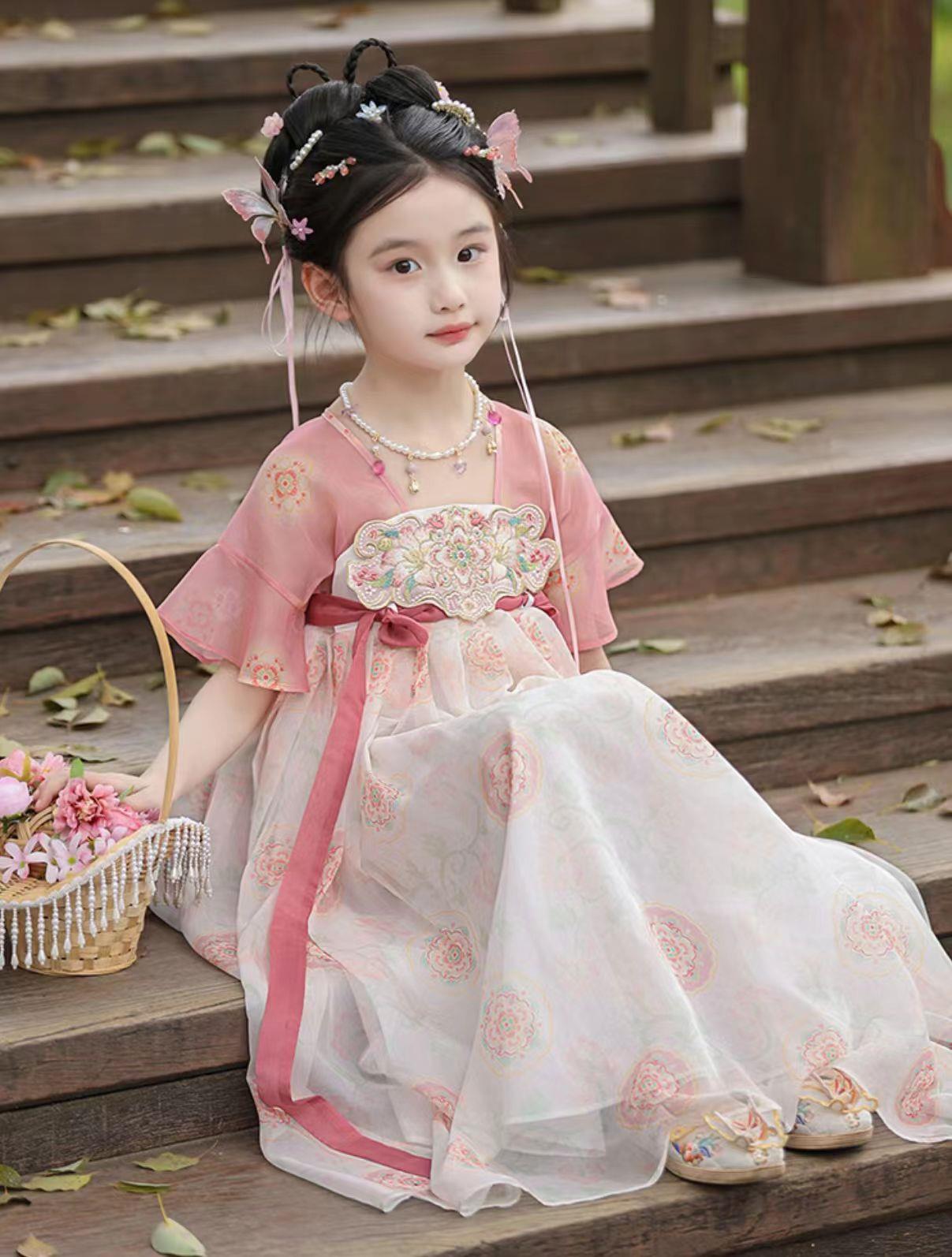 仙气彩粉,显白柔美;经典襦裙设计,版型考究;精致印花,寓意美好;棉麻混纺+纯棉内衬。