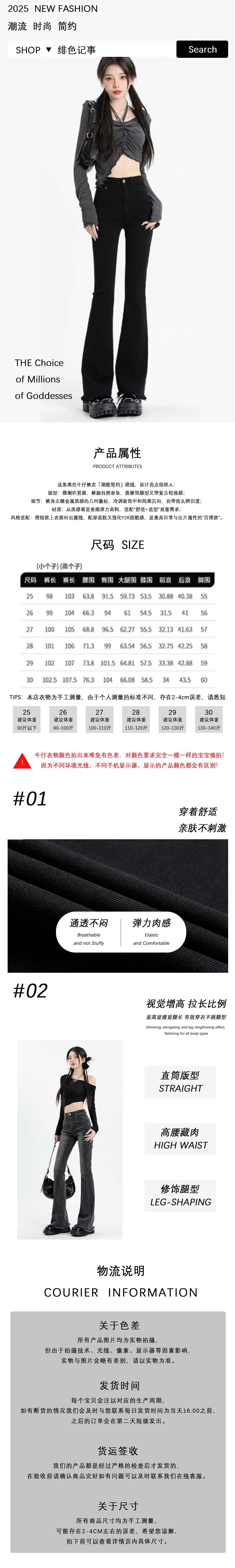 选用高弹软牛仔面料,贴腿不紧绷,包裹出腰臀曲线的同时,从大腿到脚踝的微喇弧度,刚好藏住腿型小缺点,视觉拉长腿长3cm+。高腰设计卡准腰线,搭配短款上衣露腰更显比例,日常搭卫衣、西装也能穿出松弛的酷感。
