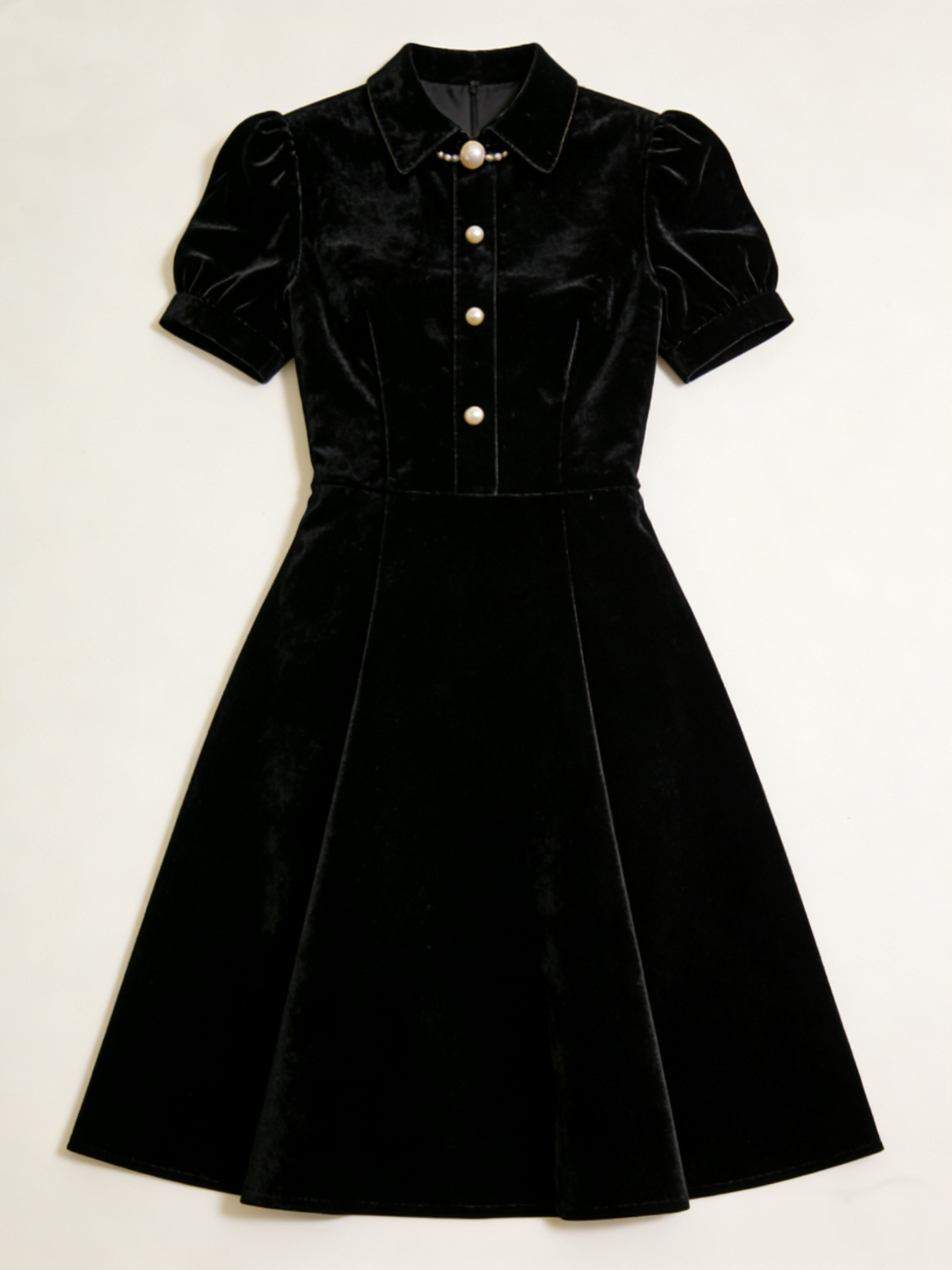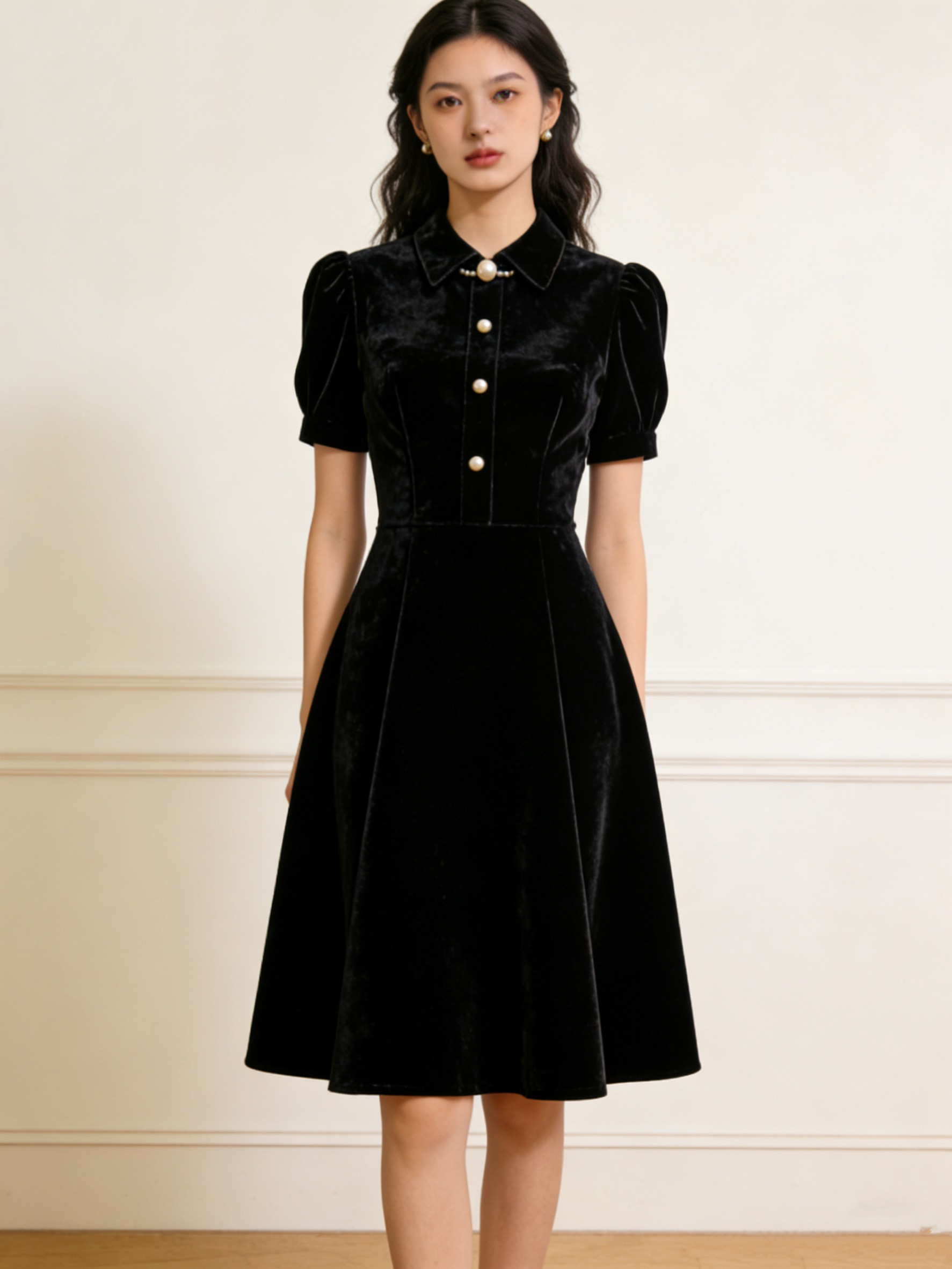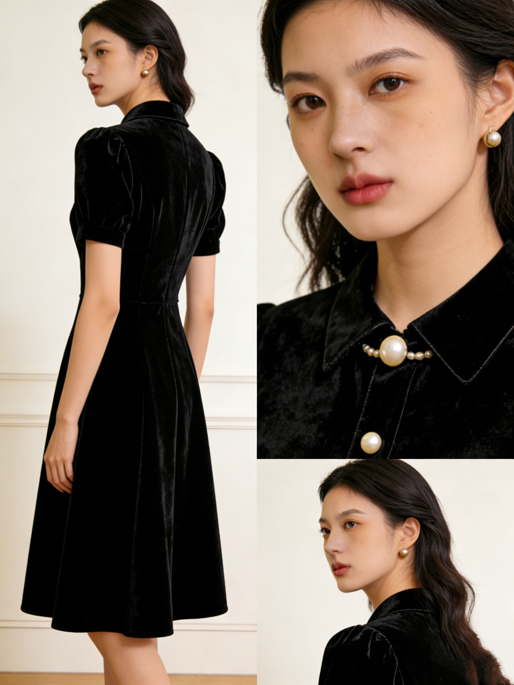 • 领口手工缝制珍珠扣,精致不浮夸,省去搭配首饰的麻烦,简约即优雅
