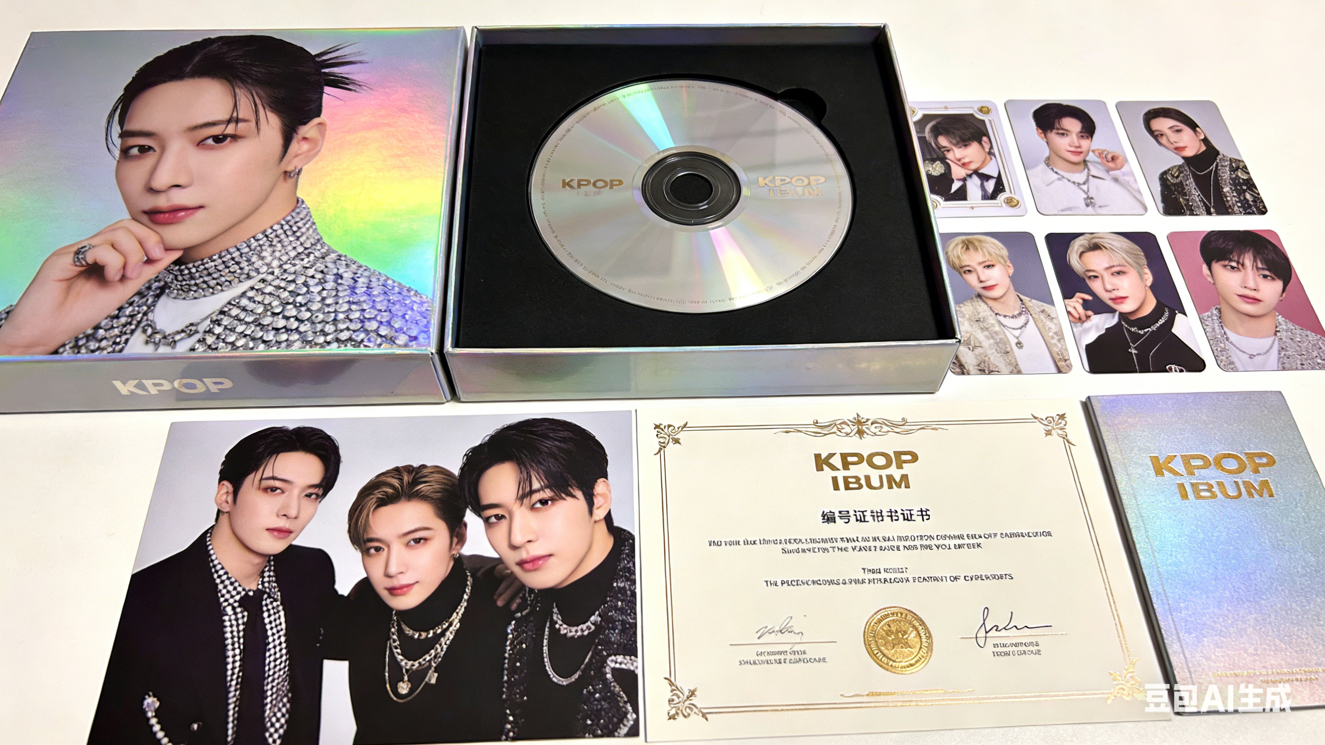 内含未拆封专辑、随机小卡套装(5 张)、定制海报及明星手写感谢信复刻版,礼盒采用镭射包装,附赠专属编号收藏证书。