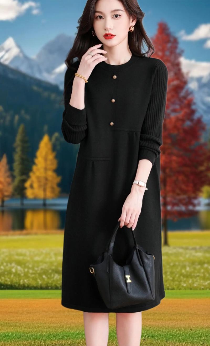 百搭款式多场景穿:长袖设计防风保暖,高领款锁温护颈,圆领款百搭不挑内搭;秋冬可内搭大衣、羽绒服、毛衣外套,日常通勤、约会都合适,也可直接外穿,搭配短靴就很有气质,一裙多穿实用性拉满。